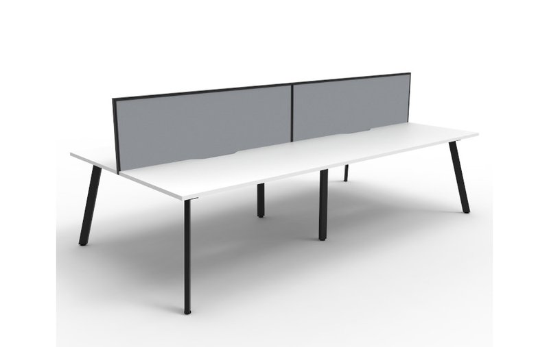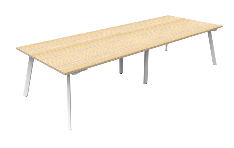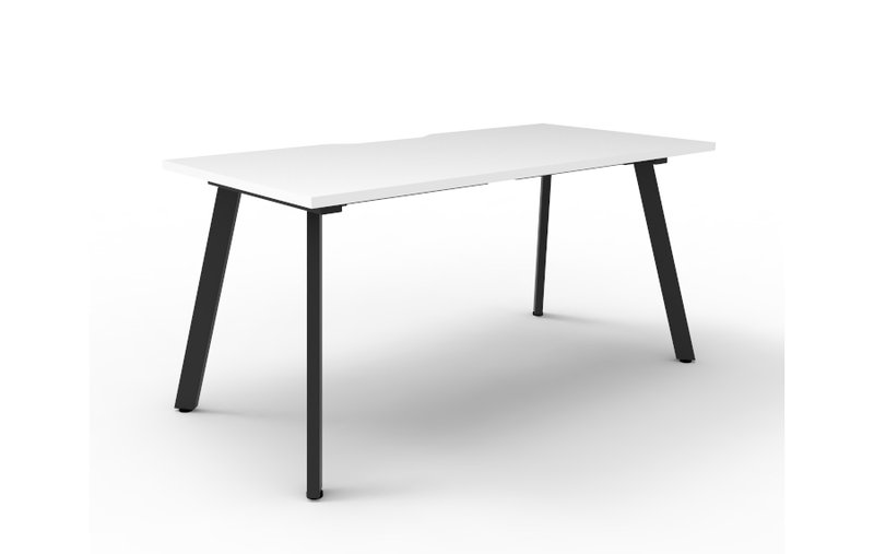 The Eternity range of desks and tables have a distinct recessed 45 degree angle leg that comes in powdercoated Black or White frame options. The standard tops come in 25mm Natural White or Natural Oak Finish. This give the office a very modern look. Different colour tops can be sourced by request.