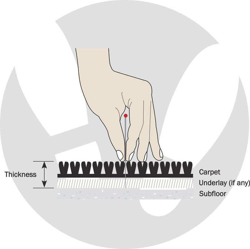 To do this, use a long drawing pin or straighten the end of a paper clip. Insert the straight end into the carpet and through the underlay until it hits the solid surface below the underlay. (Some carpets have a tightly woven backing so you may have to wiggle the paper clip or pin gently to force it through this backing).