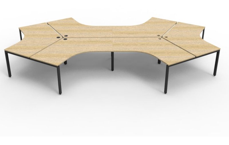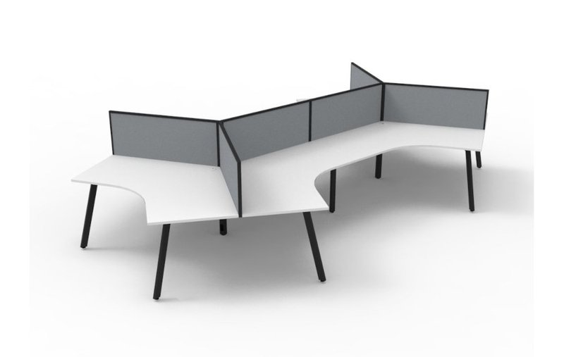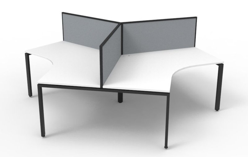 The new 120 degrees 3 person workstations give each person maximum desk space and come standard in a natural white top or natural oak top and have the same frame options as the rest of our deluxe workstation range including the straight Profile leg, the 45 degree Eternity leg set or the loop leg option in black or white.