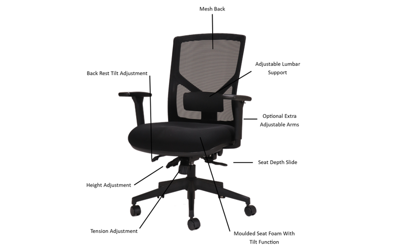 - It has a breathable mesh back with tilt adjustability